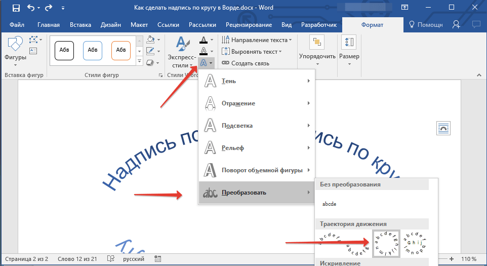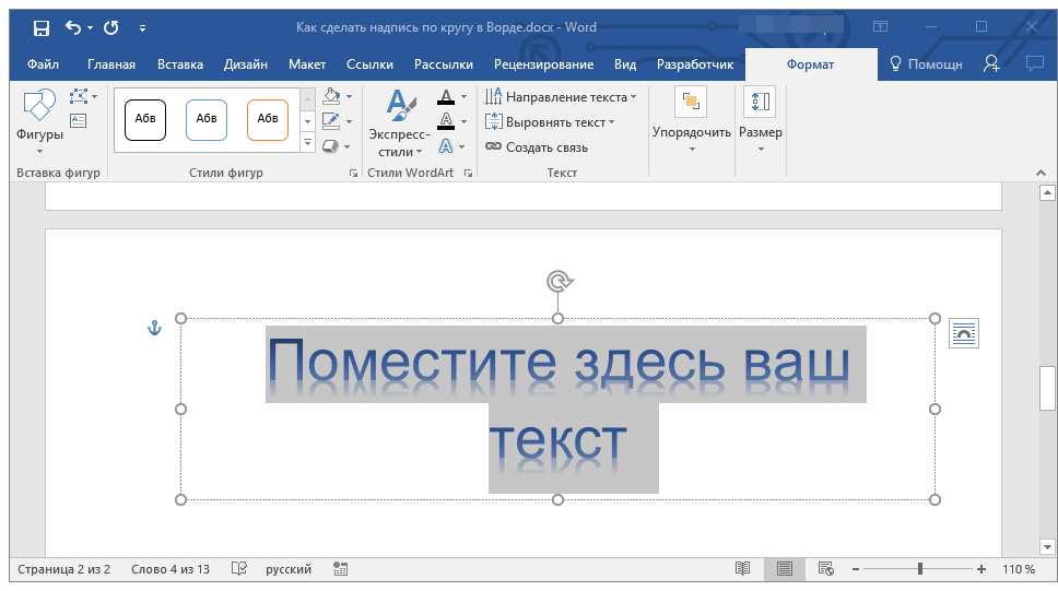 Вот вы и узнали, как в Word сделать надпись по кругу, как и о том, как сделать круговую надпись на фигуре.