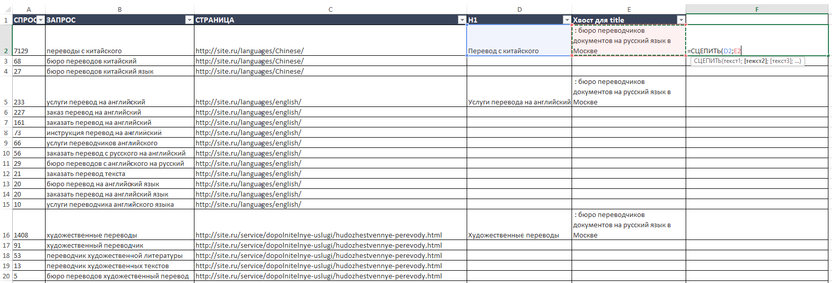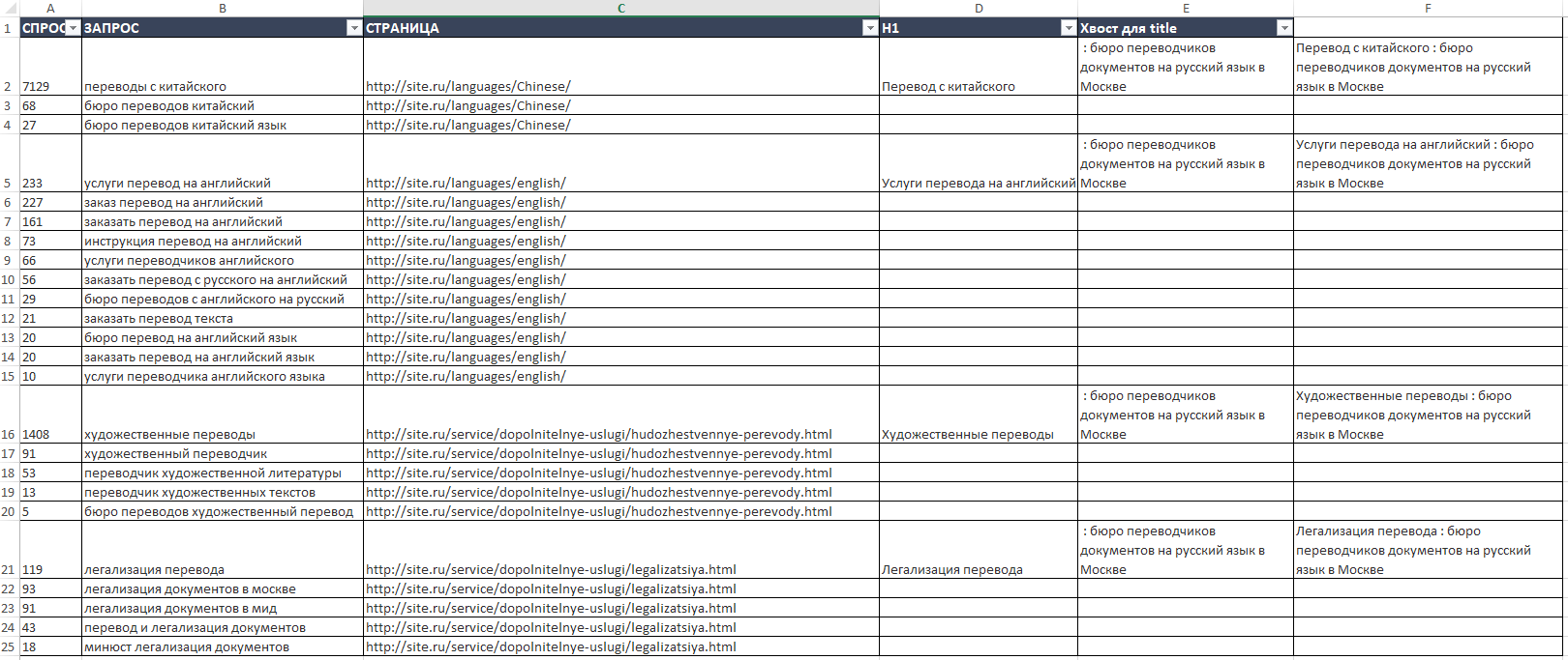 При составлении тегов Title можно воспользоваться следующим принципом: