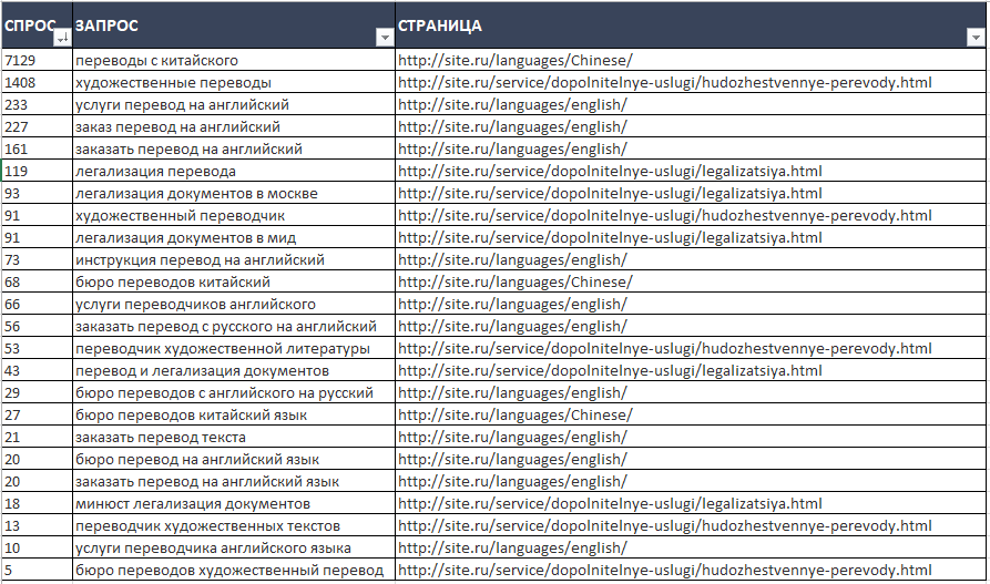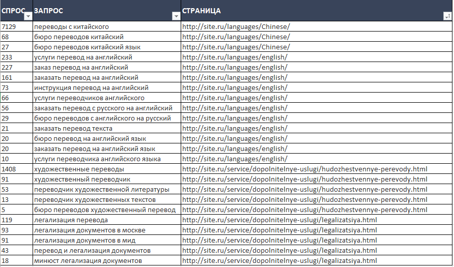 - Прямое вхождение. Это значит, что ключ нужно вписать в текст именно так, как он обозначен в ТЗ. Например: