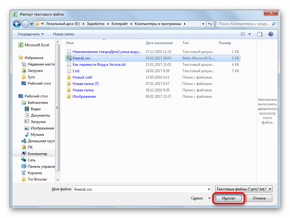 Переходим в директорию размещения импортируемого файла, выделяем его и кликаем по кнопке «Импорт».