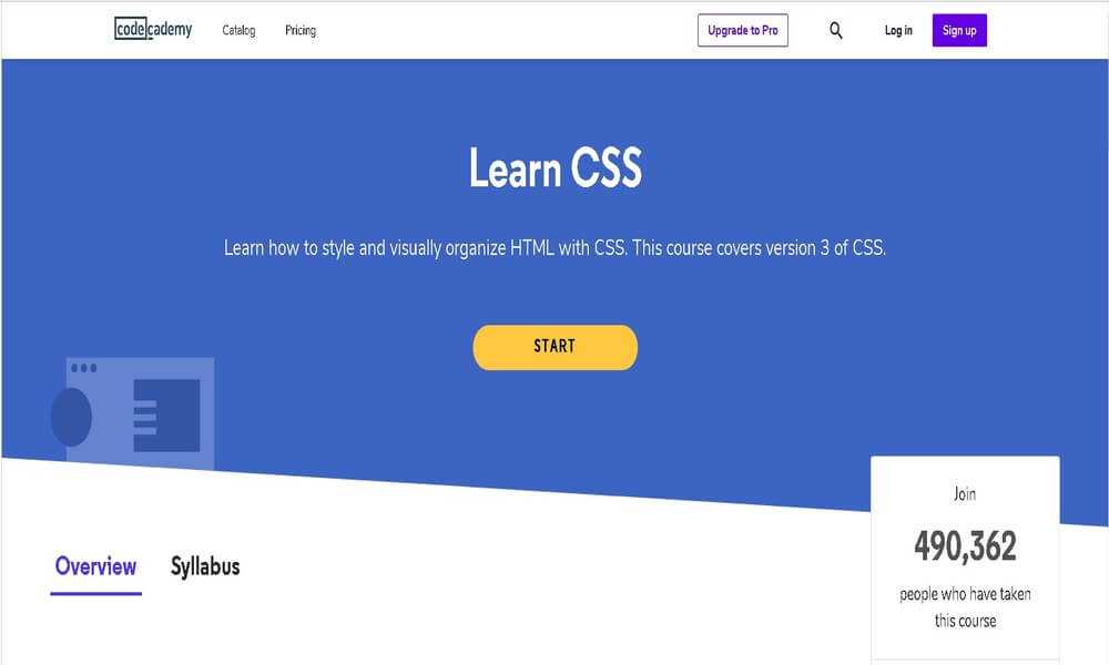 Около 500 000 из этих людей прошли курс CSS. На это уходит около 15 часов, и вы должны будете взять их введение в курс HTML как предварительное условие.Таким образом, вы изучаете CSS примерно на 22 часа.Codecademy научит , как оформлять веб-страницы с помощью файловых структур, редактирования текста, цветов и различных макетов. Вы можете использовать эти навыки для настройки ваших веб-страниц.Класс также охватывает:
