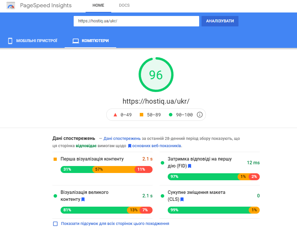 Сервис от Google, который анализирует скорость загрузки страниц на декстопах и мобильных устройствах, а также дает советы по увеличению скорости.