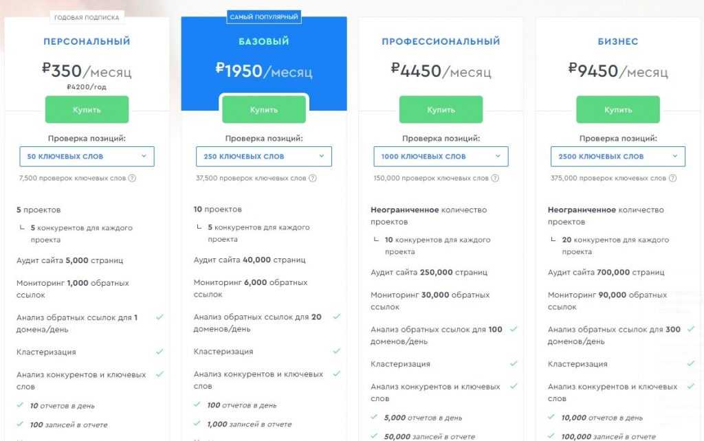 У сервиса SpyWords бесплатная версия ограничивается функциями «Анализ конкурентов» и «Битва доменов». Чтобы полноценно пользоваться всем инструментарием, необходимо выбрать один из платных тарифов: