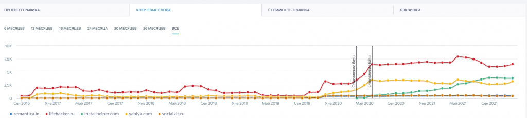 Следующий параметр, по которому нужно проводить оценку сайтов конкурентов — это семантика. Существуют специальные программы, которые предоставляют аналитику ресурса по ключевым запросам. Правильно проанализировав полученные данные, можно расширить собственное семантическое ядро.