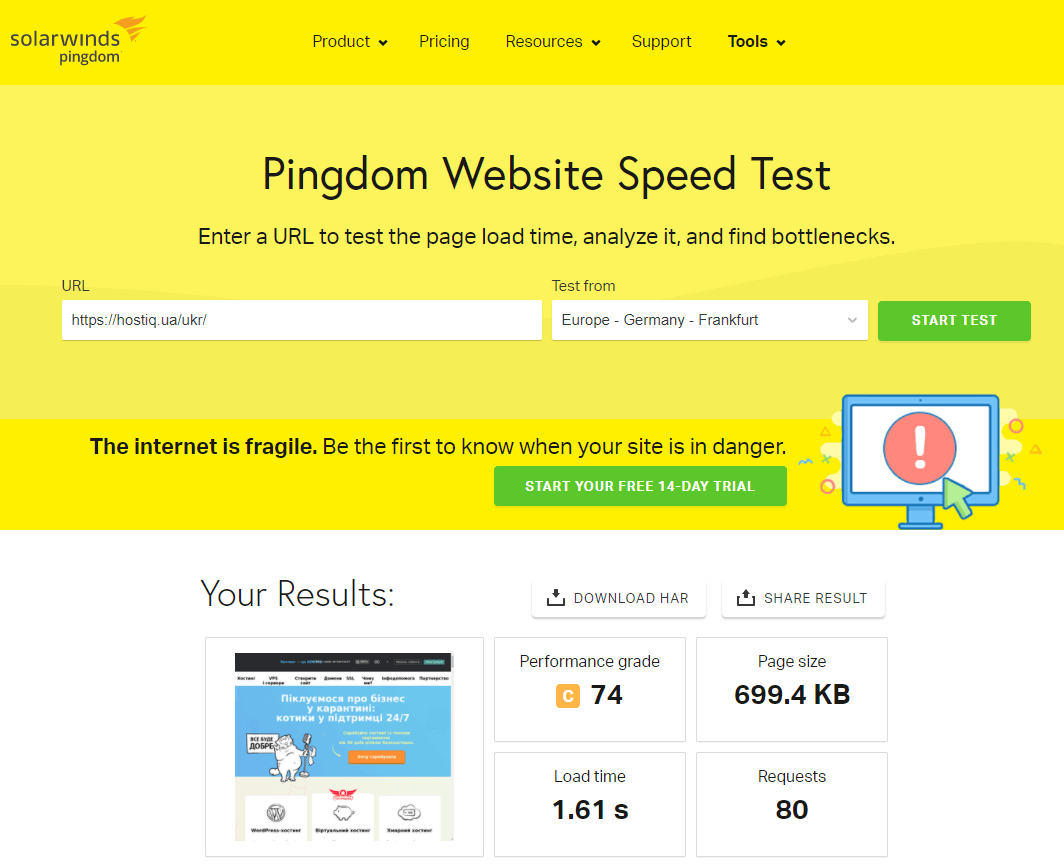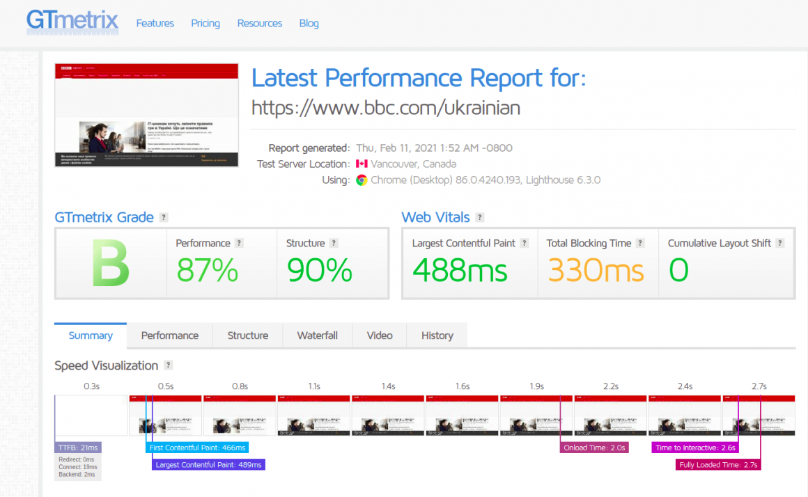 - подробная проверка скорости загрузки страницы из разных регионов и браузеров;