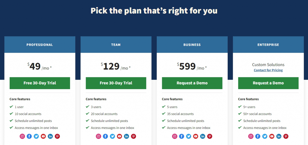 Hootsuite предоставляет возможность протестировать свои функции бесплатно, но этот период ограничен 30-ю днями. На это время сервис дает доступ к демо-версии, с полным функционалом Hootsuite Pro. После пробного периода можно продлить подписку платно, выбрав подходящий тариф.