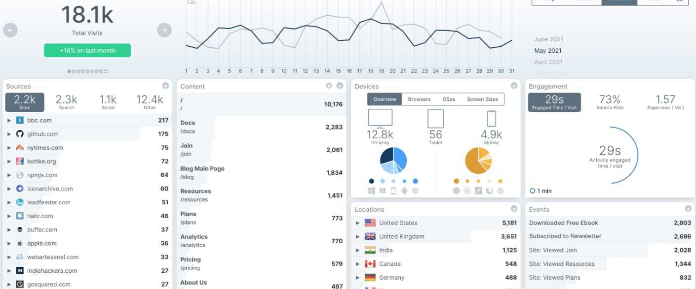 Многофункциональный инструмент, обновляемый в режиме реального времени. Во многом похож на Google Analytics, так как предлагает практически все те же возможности. Есть бесплатная версия для 1,000 данных и 100 посетителей. По мере увеличения этих показателей цена варьируется от $12,45 до $137 в месяц.