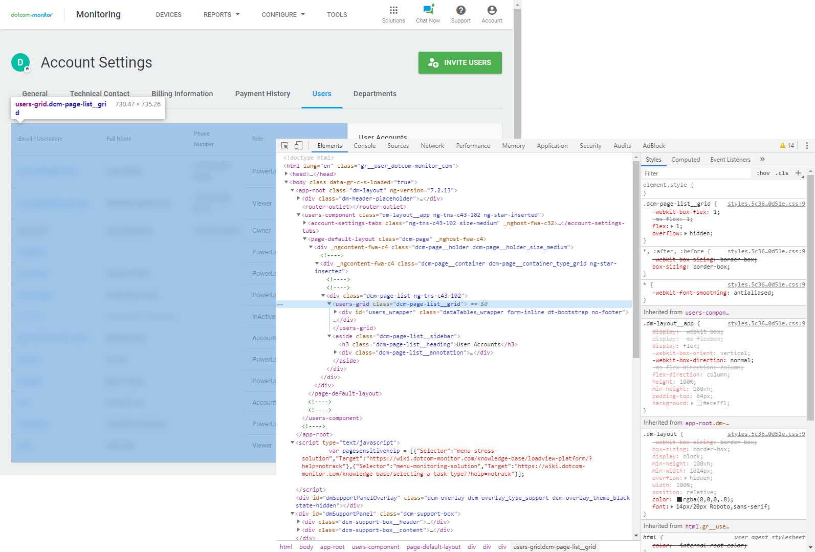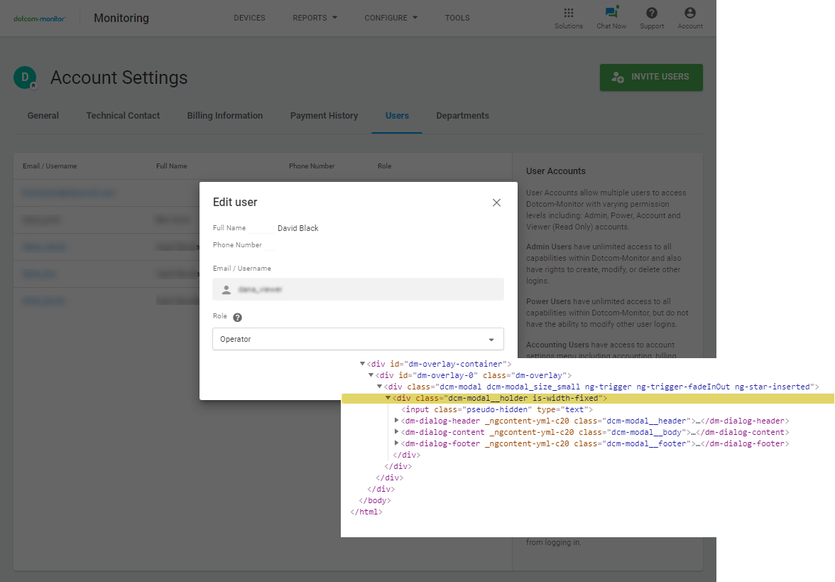 Для того, чтобы показать характер SPA-тестирования, рассмотрим тестовый сценарий, который повторяет процесс изменения пользовательских данных на странице пользователей меню настроек учетной записи Dotcom-Monitor. Страница является типичным примером SPA.