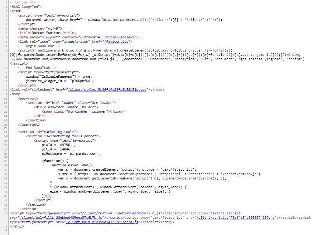В зависимости от результатов проверки подлинности содержимое страницы загружается. Как правило, все данные, включая пользовательский интерфейс, обрабатываются в бэкэнде и поставляются в HTML. Таким образом, для получения данных, GET запросы должны быть отправлены на страницу URL. Однако, когда дело доходит до SPAs, нет данных в ответе сервера, кроме скриптов JavaScript. Найти источник страницы на картинке ниже.