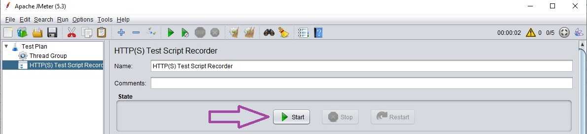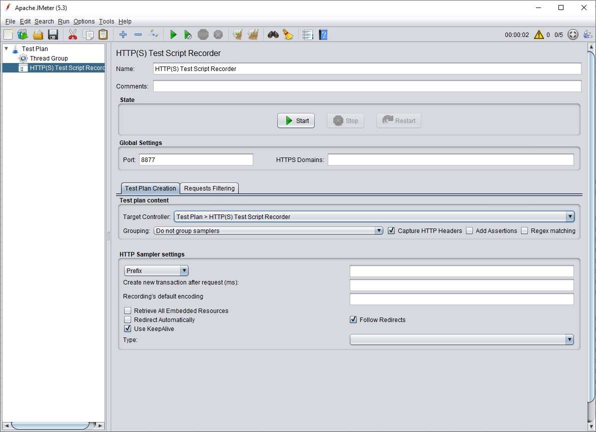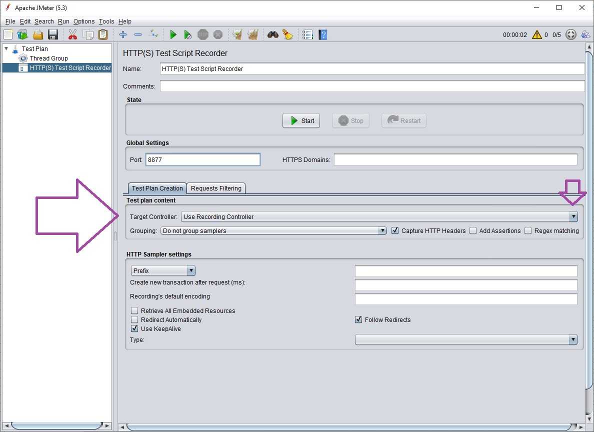 Вернёмся в JMeter и в HTTP(S) Test Script Recorder