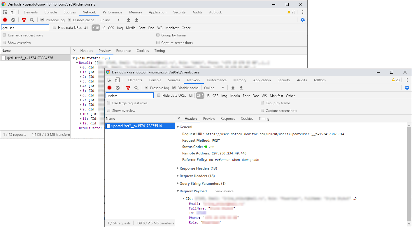 Найдите пример запросов, которые отправляются на сервер при редактировании пользовательских данных.