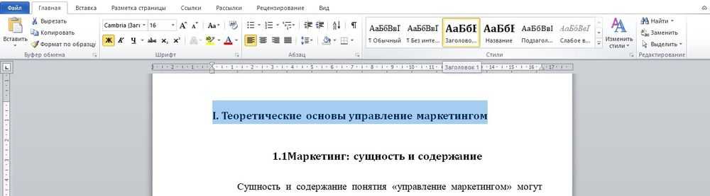 Применить соответствующие стили к названиям глав, которые требуется внести в оглавление. К примеру, для разделов – «Заголовок 1», а для подразделов – «Заголовок 2» и т.д.