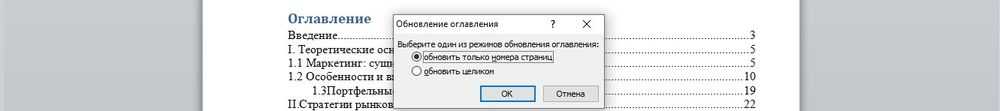 - Выбрать вариант: обновить текст целиком или только номера страниц.
