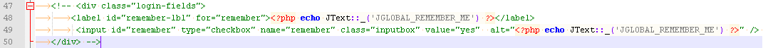Теперь вы можете отредактировать файл шаблона. В нашем примере мы закомментируем строки с 47 по 50 в default_login.php.