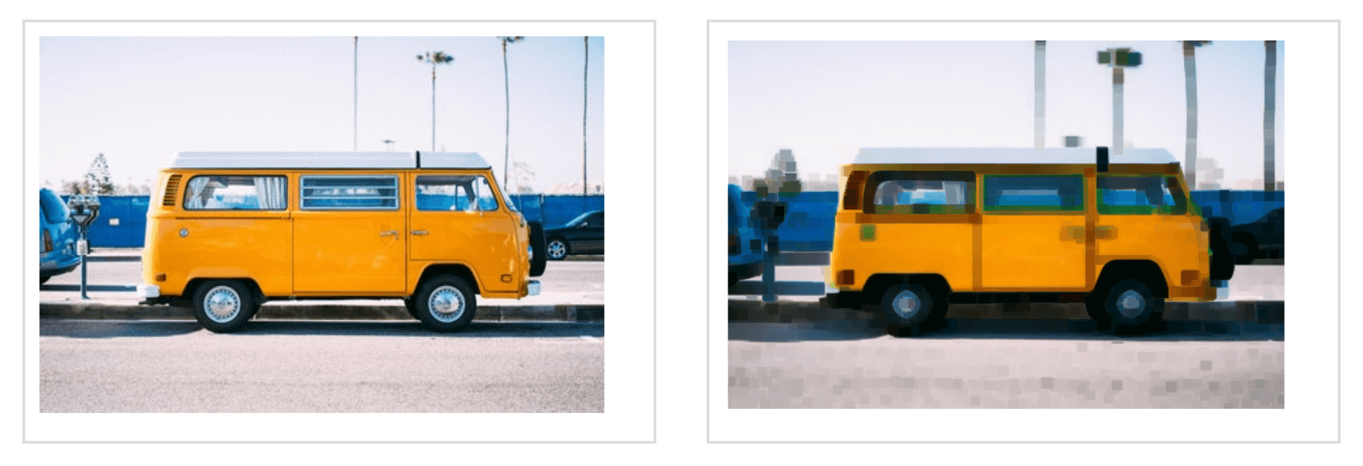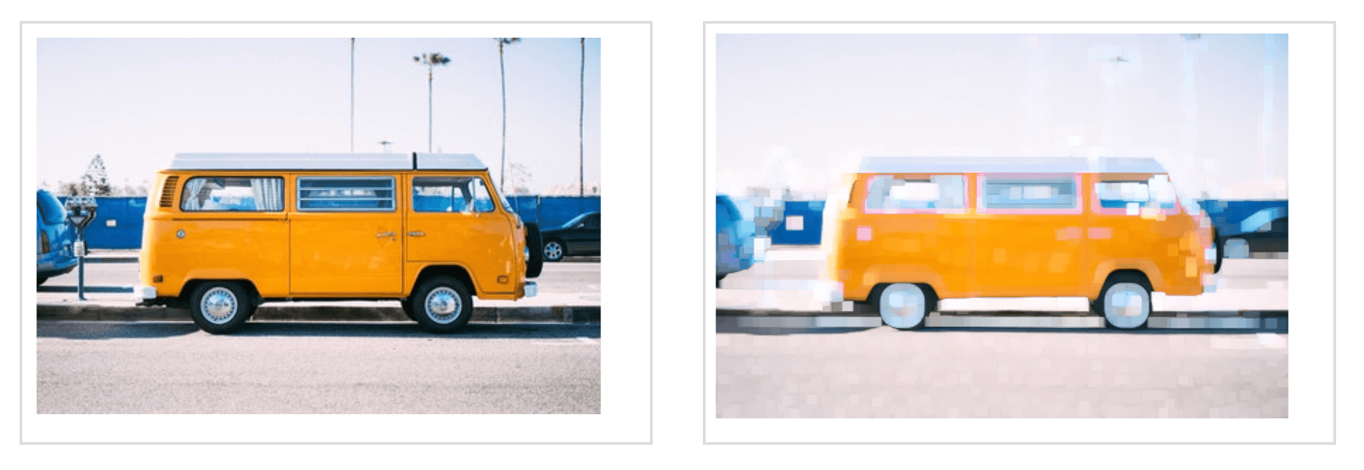 Обратите внимание изображение справа (результат) немного меньше левого (исходник):. Результат (справа) применения эффекта размывания к изображению слева