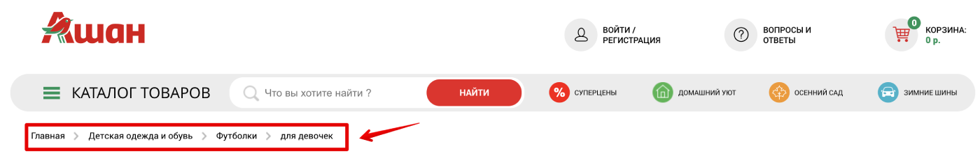 Например, якорный текст для трех внутренних ссылок на картинке ниже показаны красными стрелками.