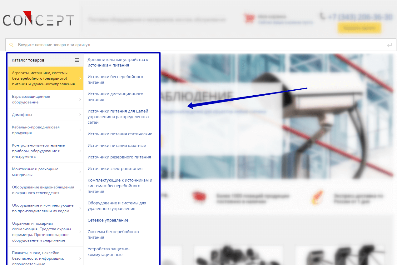 У компаний, занимающихся видеонаблюдением огромные каталоги. Из-за этого меню превращается в сплошной текст. На лицо необходимость сгруппировать пункты меню иным способом и реализовать раскрывающееся меню.