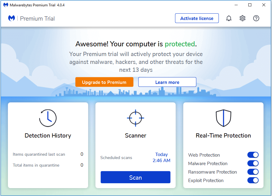 Следовательно, вы можете получить программное обеспечение для защиты от взлома — Malwarebytes Anti-Malware с официального сайта.