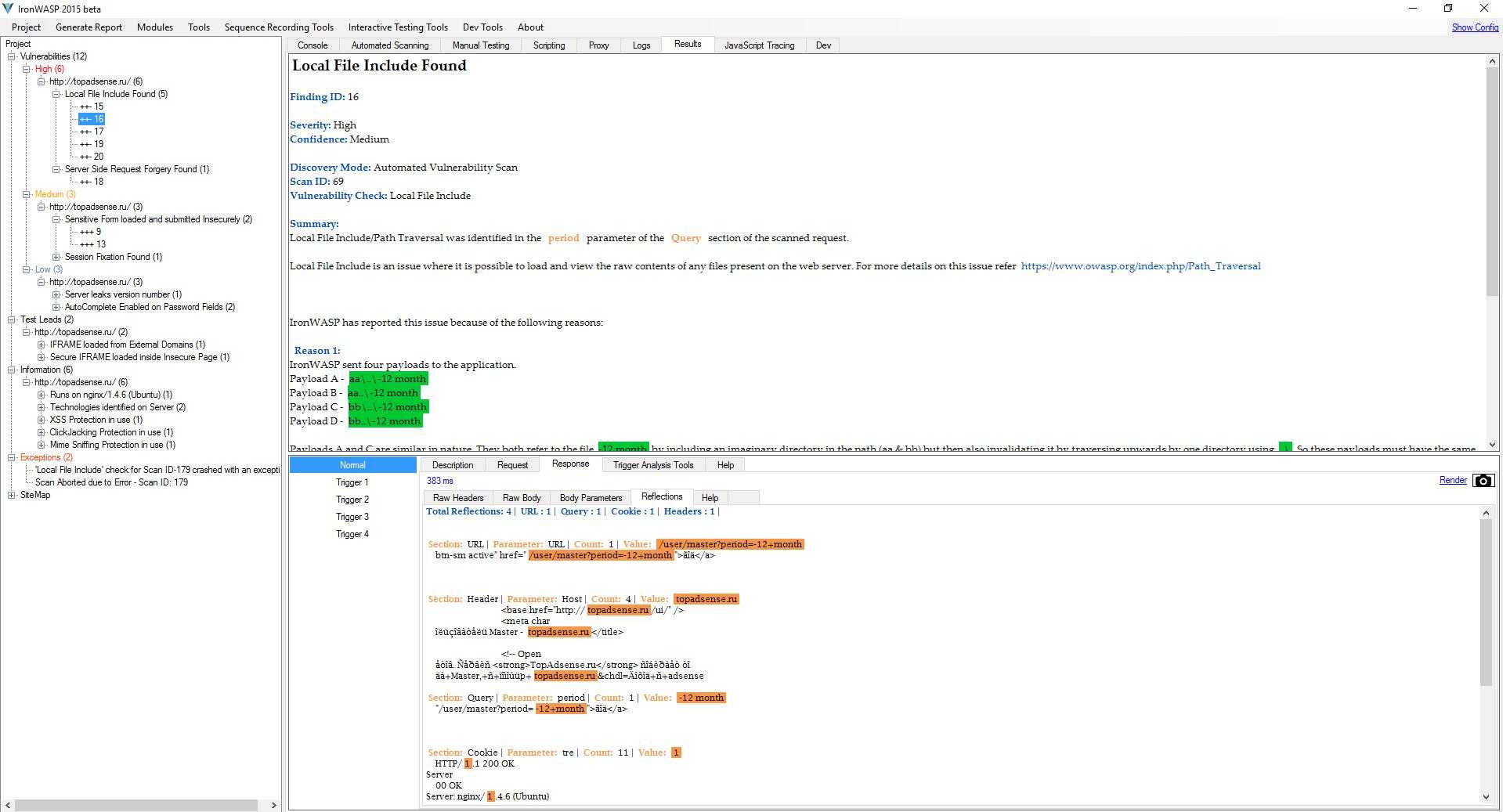 - Во-первых, нужно убедиться, что это не результат ложного срабатывания. Несмотря на то, что в IronWASP присутствует довольно интеллектуальный движок по фильтрации ложных срабатываний, этих срабатываний бывает предостаточно. Особенно для SQL-инъекций.