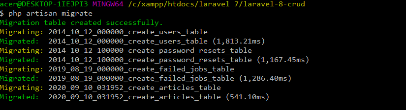 Now, we have the schema for the articles table. Therefore, let’s migrate it inside the database.