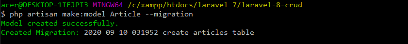 In this CRUD application, I will work on the Article for applying the CRUD operations. So, I will create a model and migration for the Article.