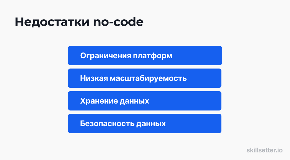 No-code не вытеснит классическую разработку — у продуктов, разработанных без кода, есть свои ограничения. Рассмотрим основные недостатки ноукода.