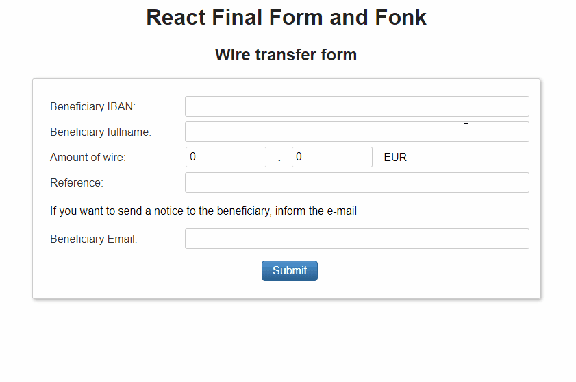 Well, we’ve had a great time adding field validations, but there are validations that are tied up to the whole record we are editing rather than to a given field. For instance, let’s face this scenario: You are not allowed to transfer more than 1000 € to Switzerland using this form (for instance: you have to go through another form where some additional documentation is required).