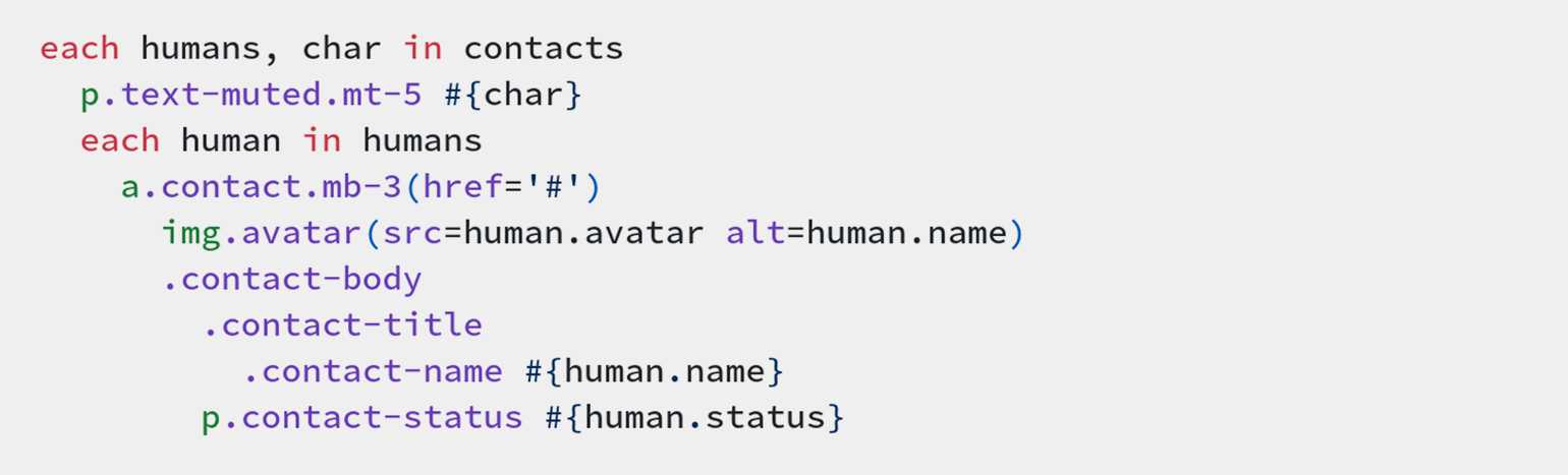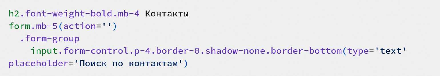 Пример кода Pug. Скриншот: предоставлен автором