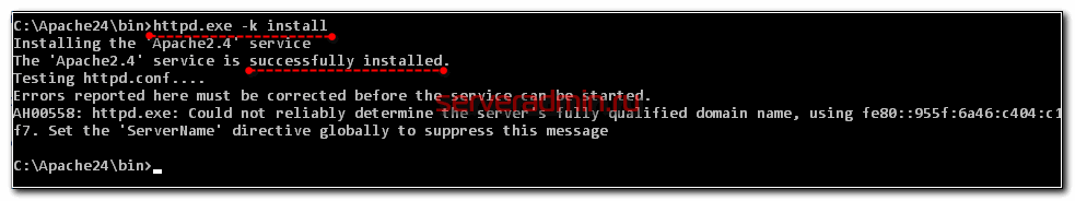 Для этого открываем командную строку от администратора (это важно), переходим в каталог C:\Apache24\bin и выполняем: