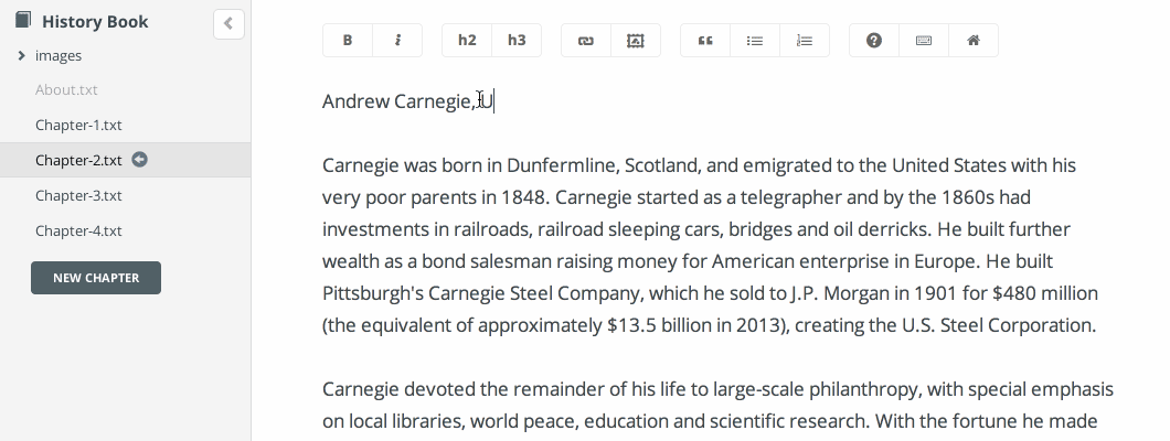 Penflip — полезный текстовый редактор, в котором можно создавать неограниченное количество проектов и редактировать документы с коллегами. Вы можете работать с неограниченным количеством сотрудников, что является особенностью сервиса. Ваши документы сохраняются на сайте, вы можете открыть их, изменить или обновить в любое время. Можно сохранить документ на ПК как ePUB, PDF, DOC, HTML, текст и т.д.