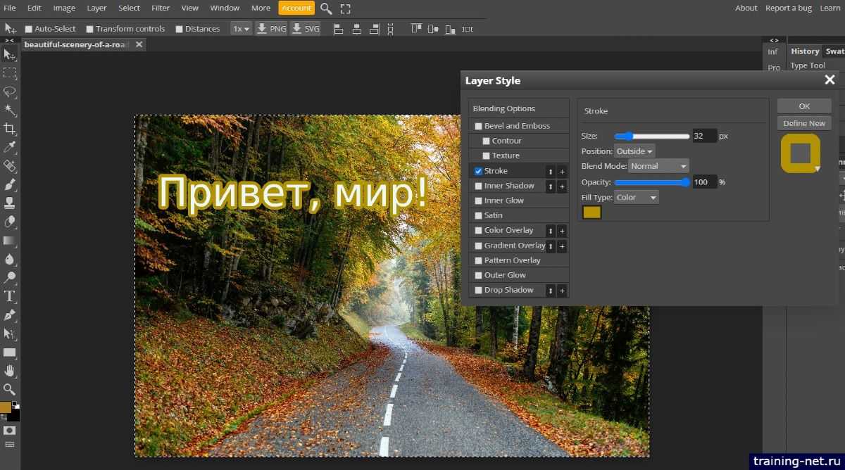 Photopea – это облегченная версия фотошопа. Похож интерфейс, набор инструментов. Более того, сервис позволяет работать с файлами PSD (открывать PSD и сохранить в PSD). Для тех, кто знаком с Adobe Photoshop в Photopea будет работать очень просто.
