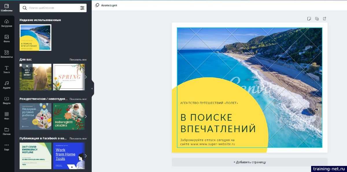 Бесплатный онлайн-редактор изображений Canva подойдет даже тем, у кого нет опыта в дизайне, потому что сервис предлагает готовые бесплатные шаблоны по разным тематикам. Шаблоны позволяют создать дизайн очень быстро.
