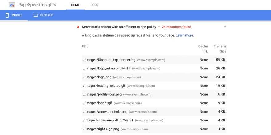 PageSpeed выдает предупреждение, связанное с политикой кэширования