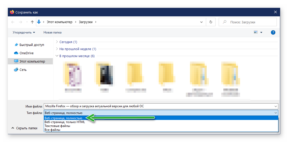 Указать место, куда нужно сохранить файл.В «Тип файла» укажите, как бы вы хотели сохранить страницу: