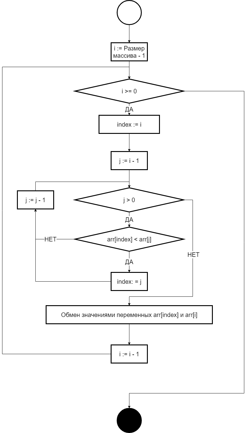 Рис. 2. Блок-схема алгоритма сортировки нахождением максимума от меньшего к большему.