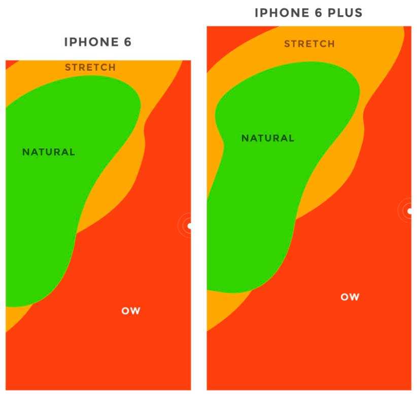 В качестве примера, посмотрите на эти тепловые карты Thumb Zone от Скотта Херфа: