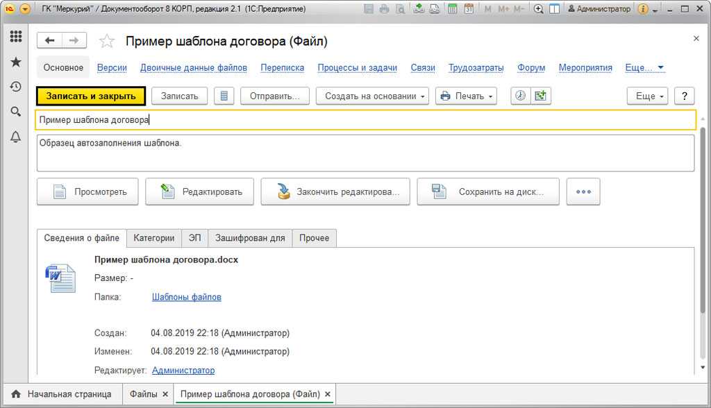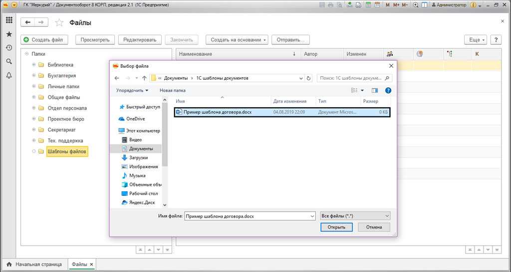 После этого, в следующем окне выбираем до этого подготовленный файл. Называем его на свое усмотрению, например, «Пример шаблона договора». В будущем в нем будет храниться наш шаблон документа.