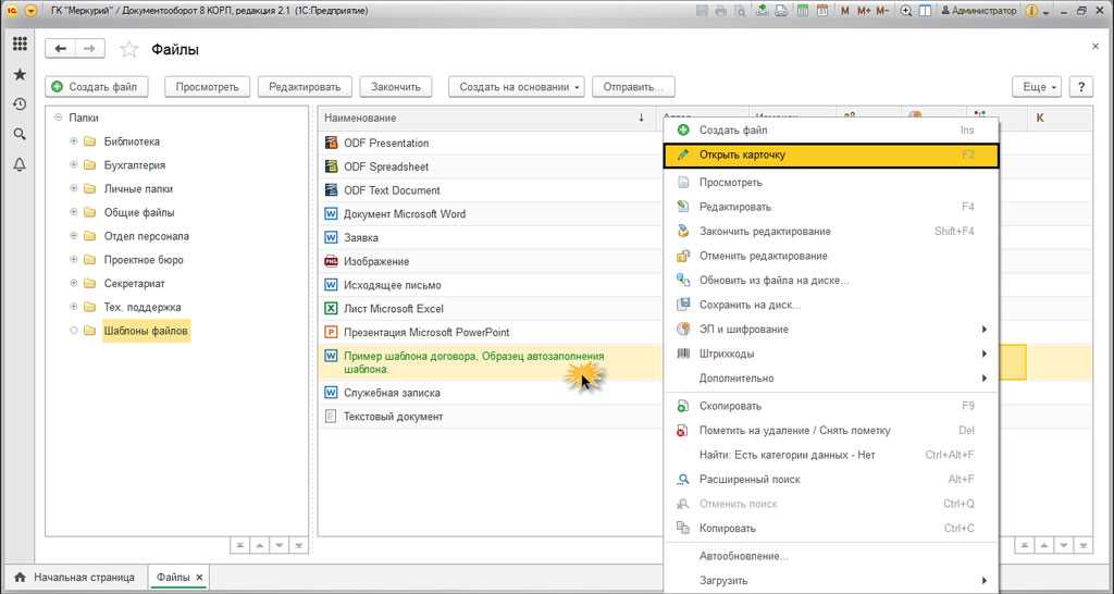 Для открытия файла, нам потребуется щелкнуть по нем правой кнопкой мышки, и нажать «Открыть карточку».