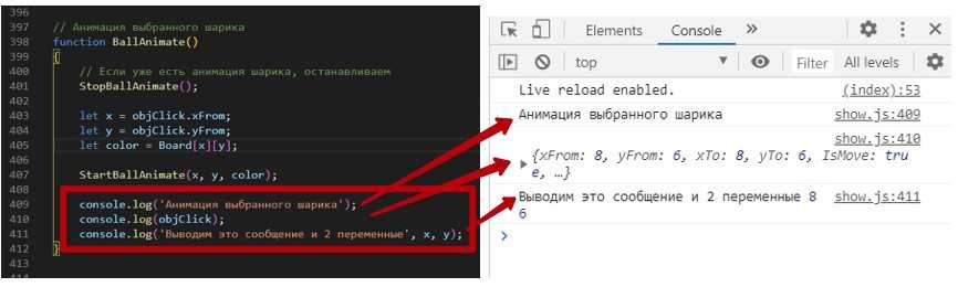В консоль можно выводить сообщения прямо из скрипта. На практике это самый широко используемый метод отладки, поскольку является простым и универсальным. Выражение типа “законсоль эту переменную” понятно любому JS-программисту.