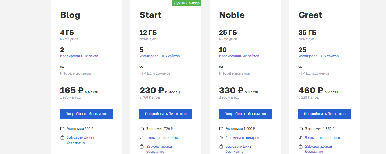 После этого вам предложат выбрать домен и подобрать подходящий тарифный план. Но можно попробовать бесплатный вариант. Если вас все устроит, можно подключить платный хостинг.