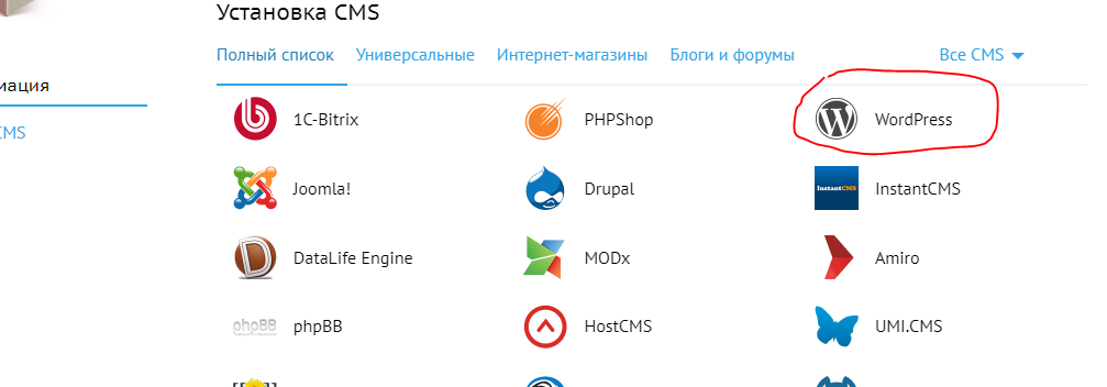- Beget cms — это дополнительная функция которая позволяет установить движок и работать с файлами сайта и движка прямо с админки. И как вы заметили на картинке ниже, бегет дает возможность установить не только движок вордпресс, но и другие движки, плюс тех поддержка (хороший выбор).