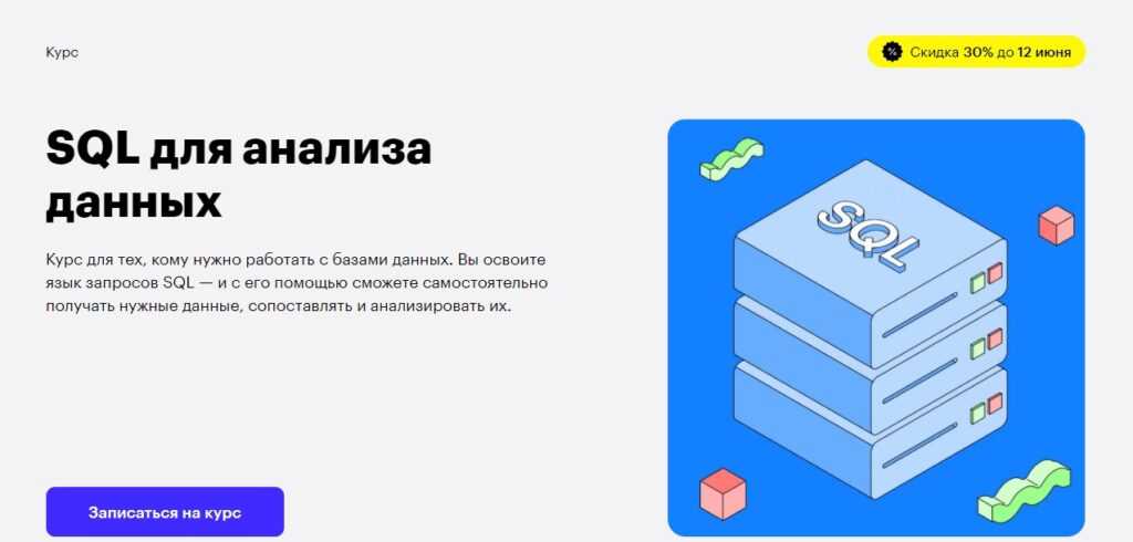 Высокую вариативность предлагает образовательная программа от SkillFactory. Она разбита на две части — базовую и продвинутую, которые можно купить как отдельно, так и вместе с хорошей скидкой. Это поможет тебе изучить SQL не только если ты хочешь стать специалистом, но и при необходимости понимания основ.