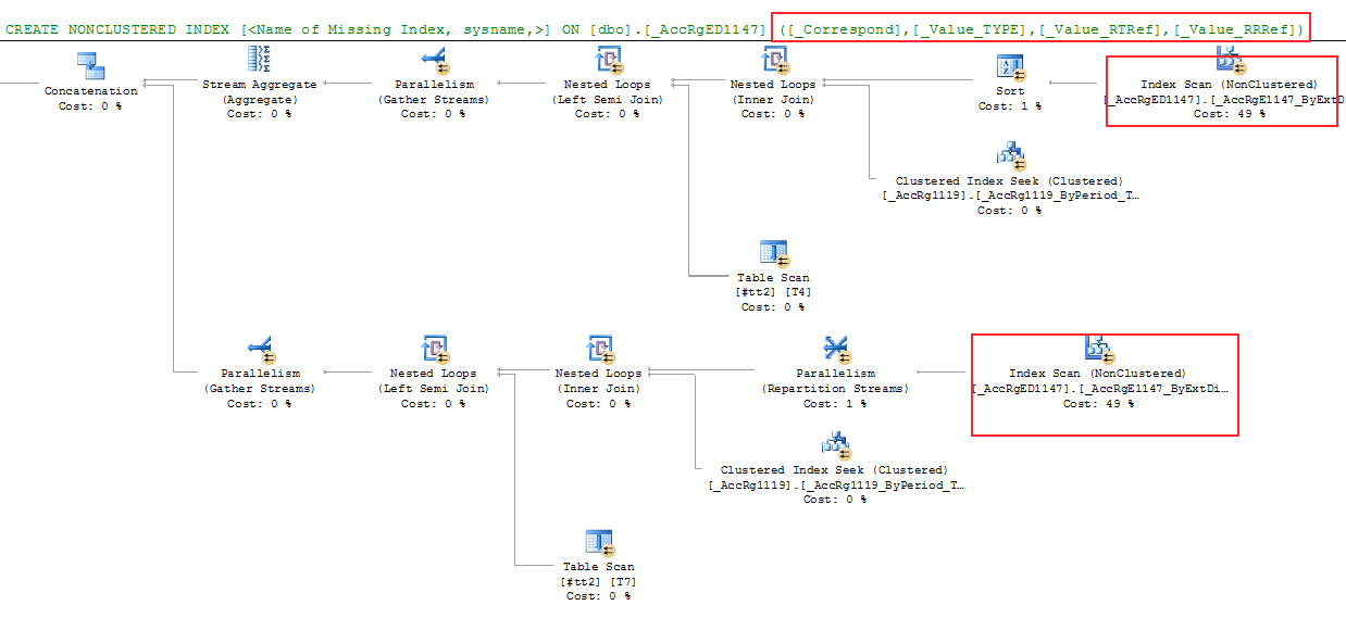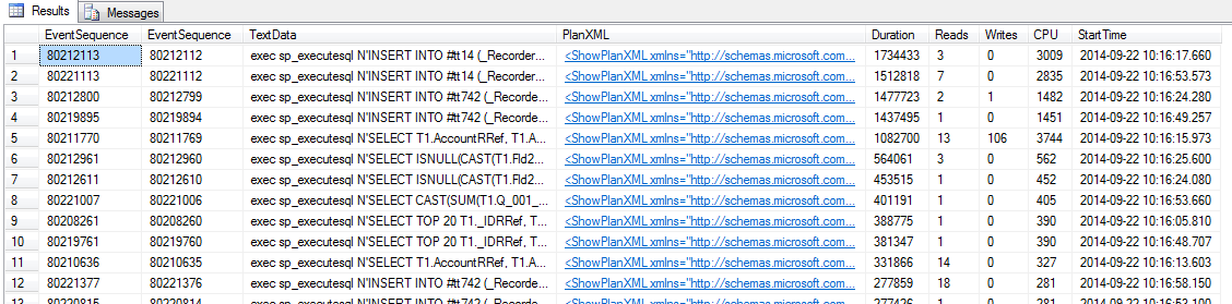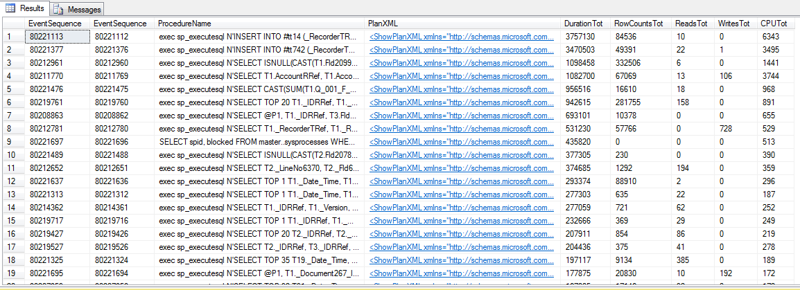 В нашем случае, по итогам двух запросов, лидирует вставка во временную таблицу #tt14 PlanXML из первой строчки: