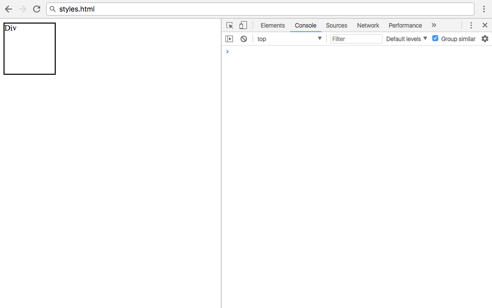 Мы создадим небольшой пример для демонстрации редактирования стилей с помощью JavaScript. Ниже представлен новый файл HTML с блоком , который имеет вложенные стили, применяемые для отображения квадрата.
