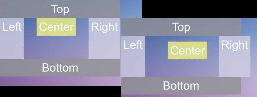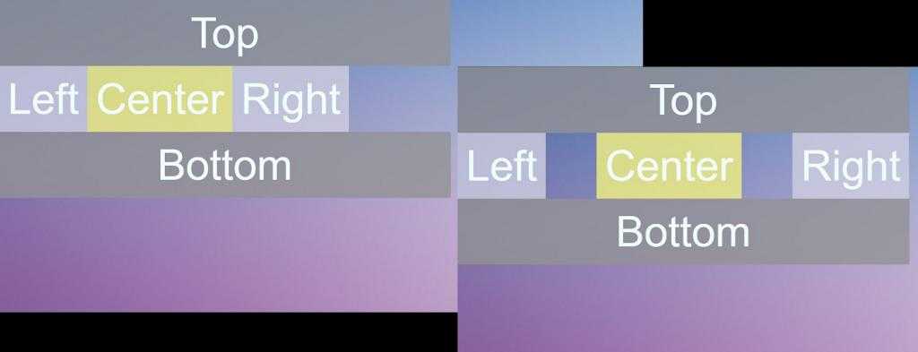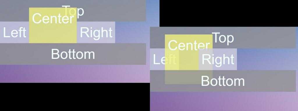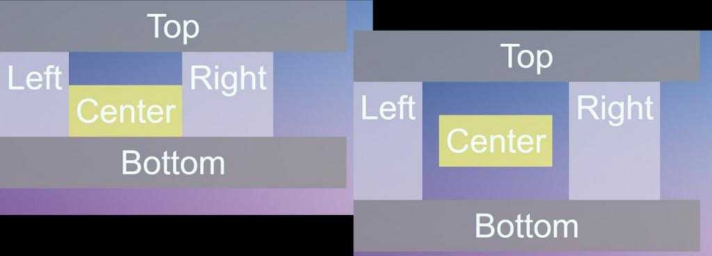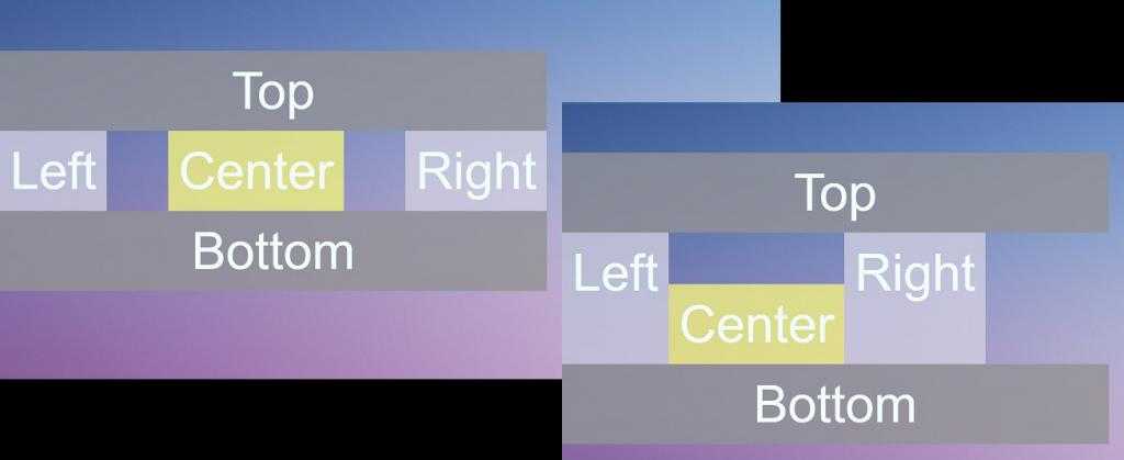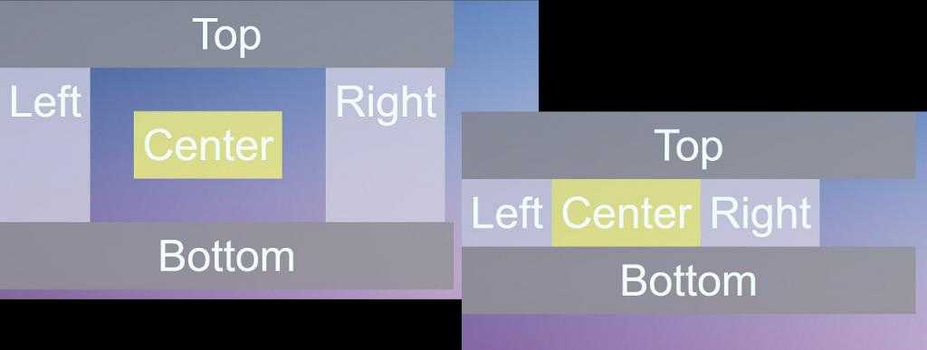 для каждой из сторон (top, right, bottom, left) элемента (например, указано значение верхнего внешнего отступа от края элемента center);