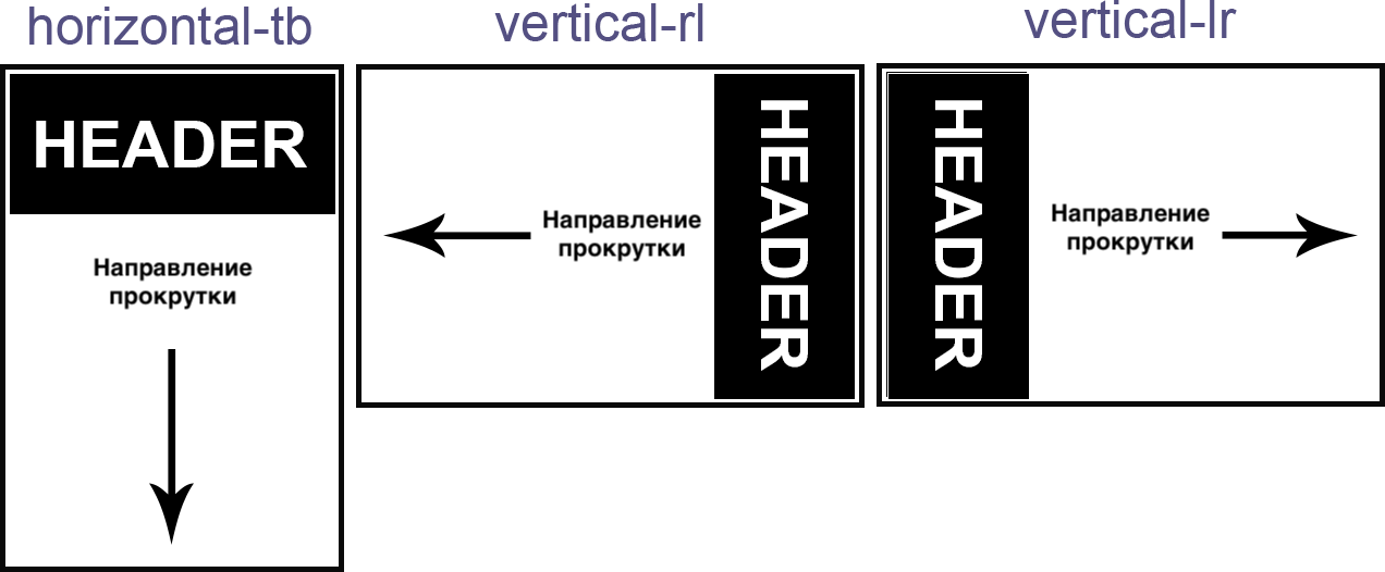 Определяет, откуда должен начинаться текст: слева направо или справа налево, но только в случае, если задано значение по умолчанию для свойства . Если мы поменяем значение на один из вертикальных режимов, то фактическое направление написания изменится с положения слева направо и будет идти сверху вниз. Или наоборот, при значении с (справа налево), оно изменится на сверху вниз.