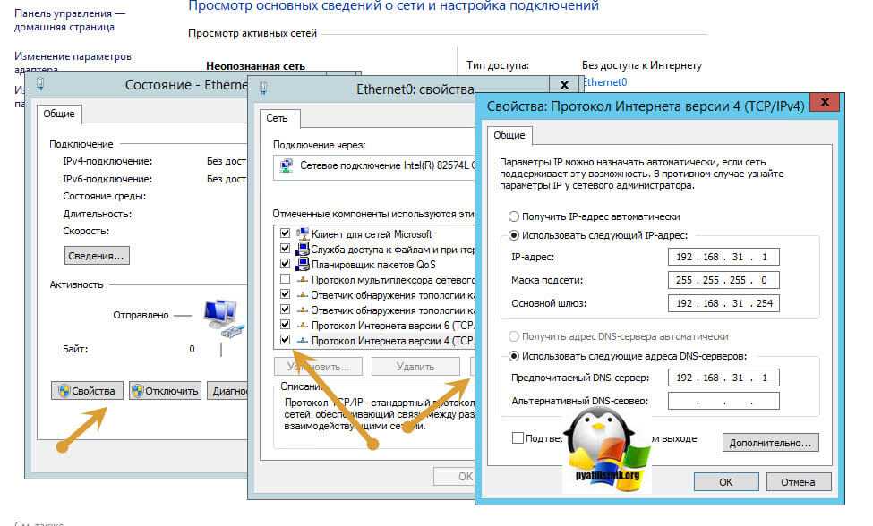 - Если отключение интерфейса не помогло, то зайдите в свойства вашего сетевого адаптера, в интерфейс ipv4. И так, если у вас конфликт ip адреса в сети, происходит из-за того, что у вас на сбойном компьютере установлен не правильный ip адрес, то измените его на нужный, или поставьте получение IP-адреса автоматически. Если у вас уже стоит получение IP-адреса автоматически, то наоборот настройте статический адрес отличный от конфликтного. Все сетевые настройки, в лучшем случае нужно узнать у сетевого админа, но если их нет, то чаще всего в качестве DNS-серверов выступает ip-адрес основного шлюза, он же ваш роутер (коробочка, что дает интернет и WIFI), прописываем его, а вот, маска в 99% случаев 255.255.255.0, а вот основной адрес придется по подбирать, чтобы проверить не занят ли он кем то, без DHCP сервера, выполните до него команду Ping, она все вам ответит.